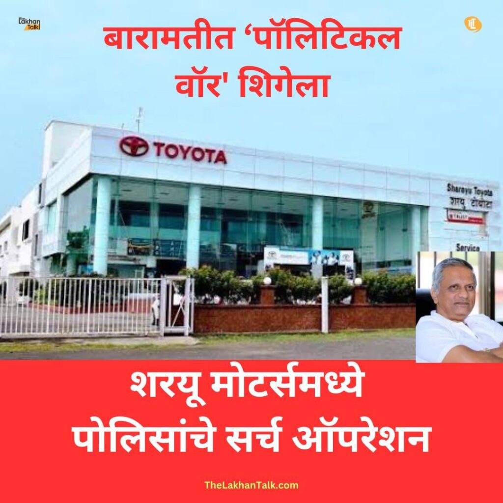 निवडणुकीच्या पार्श्वभूमीवर या तपासणीकडे लक्ष लागले आहे. बारामतीमध्ये शरद पवार आणि अजित पवार यांच्या जंगी सभा झाल्या. या दोन्ही सभांमधून आपापली ताकद दाखवण्याचा प्रयत्न झाला. बारामतीकर नेमके कोणाच्या पाठीमागे जाणार हे निकालांती स्पष्ट होईल? दरम्यान, राजकीय घडामोडींना वेग आला आहे. यासोबतच एकमेकांवर आरोप प्रत्यारोप देखील सुरू झालेले आहेत. शरयू मोटर्समध्ये पोलिसांनी निवडणुकीच्या पार्श्वभूमीवर तपासणी केल्यामुळे सर्वांच्या भुवया उंचावल्या आहेत. याबाबतीतले तपशील अद्याप हाती आलेले नाहीत. ही तपासणी नेमकी कशामुळे करण्यात आली याचे देखील उत्तर अद्याप प्रशासनाकडून देण्यात आलेले नाही. मात्र, या तपासणीची चर्चा राजकीय वर्तुळात रंगली आहे. दरम्यान, या तपासणीत काहीही आक्षेपार्ह आढळून आले नसल्याचे पोलिसानी माध्यमांना सांगितले.